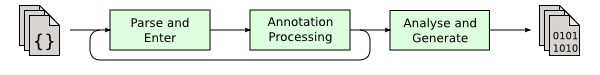 - All appropriate annotation processors are called. If any annotation processors generate any new source or class files, the compilation is restarted, until no new files are created